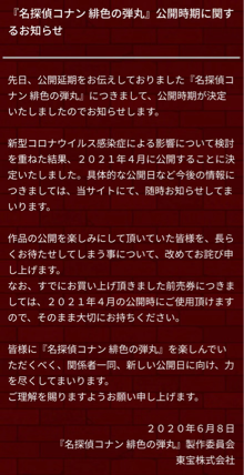 原本规定在2020年发布这场电影,与迪士尼的电影花木兰对打,不过,受病情影响要下年才行!