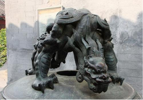 论说这怂的毛病,蒲牢称第一,就没人敢称第二了。这龙子平日里是个爱吼爱叫的乐天派,什么也不怕,天地之间唯我独尊,偏偏到了海里见到鲸鱼就成了宝宝。古书上记载,说蒲牢还曾被鲸鱼吓哭过,简直怂到没朋友。宝宝心里苦,但宝宝不说!可谁让人家出身好呀,龙王的四子,哪个鲸鱼没事儿敢去吓他?真不怕派来蒲牢的二哥睚眦,分分钟让鲸鱼变成一级濒危保护动物吗?所以啊,蒲牢平时的日子过得还是很潇洒的。人们也很理解他的这个“心病”,邀请他坐镇钟鼓,没事儿撞个钟,大吼大叫随便你威风,咱不去惹那个讨厌的鲸鱼,咱就住在陆地上。