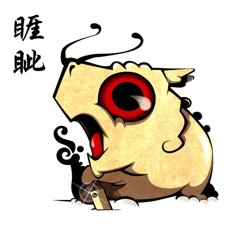 睚眦不仅脾气不太好,长得也凶神恶煞一般,平日里总被龙王老爹嫌弃,他就放飞了自我,专门惹是生非。因为睚眦这种整天怒发冲冠的性子,人们也干脆利用他的脾气,把他放在剑柄上做装饰,逢人打架,不管是单挑还是群架,人家睚眦就没在怕过的。连带着握剑之人也觉得威风八面,帅气得不得了。不过睚眦这性子不招人喜欢,长得也不是慈眉善目的面相,所以连带着“睚眦必报”都变成了贬义词,专门指那些什么都要怨恨一下的人。其实,人活着呢,开心最重要……