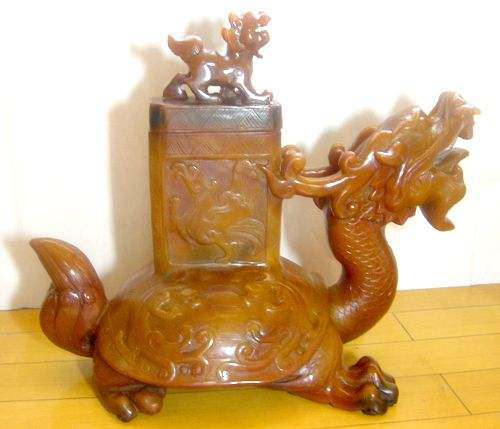 人们常说,人活在世上做啥事儿都累,只有一件事儿不累,那就是做梦。哈!想不到吧?龙子之中也有这么一位做梦高手。狻猊是龙的五子,他的座右铭就是“人生一场大梦,世事几度秋凉”。只要能睡着,绝对不醒着;只要能躺着,绝对不站着。其实呢,人家狻猊才不是那样的龙子呢。狻猊好烟,喜好吞云吐雾,这哥儿们能在香炉上一蹲几千年,过得比神仙自在。人们为了让他过得好一点,于是在香炉上刻上了狻猊的图像,就让他终日与香炉香烟为伴,醉生梦死吧!