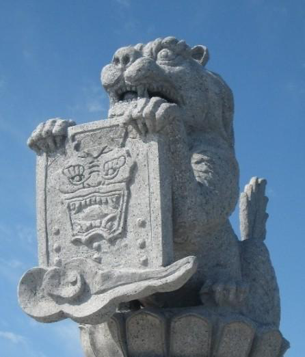 狴犴好讼,在古代就是刑侦的最好代表。可能凶猛的样子被人说多了,狴犴也没像其他兄弟那样自暴自弃,反而继续努力,成了九子当中的大法官。不仅在狱门上作为装饰头像,还在行政长官衔牌和肃静回避牌的上端坐着,虎视眈眈,环视察看,维护公堂的肃穆正气。有人说,有狴犴的地方,就少冤狱,狴犴都看在眼里,分辨清楚呢。不仅如此,狴犴还是黎民百姓的守护者,每当有贪官污吏出现的时候,就会有狴犴的身影出现,明断是非,整肃正气,不让好人蒙冤,也不让恶人逃罪。颇有点最高法院大法官的味道嘛。